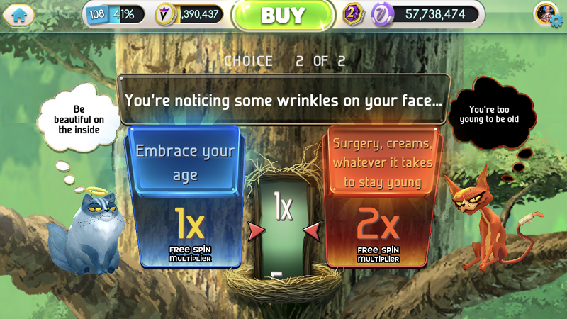 The leading* game in the “Cats present you with moral quandaries” genre. Players are presented with moral quandaries and urged towards good or evil by the fluffy, angelic Devin or the feisty, devilish Dell.